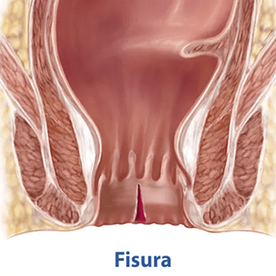 La fisura anal es una herida lineal o desgarro en el tejido delgado y húmedo que recubre el ano, en su zona más externa. Causa intenso dolor al momento de las deposiciones, dura varias horas y puede presentar algún sangrado anal. La causa más frecuente es el estreñimiento y las heces demasiado duras o de gran tamaño.